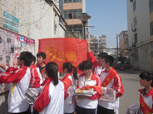 志愿者来到苇湾社区,与工作人员取得了联系,在他们的陪同下,志愿者将宣传栏里的小广告一点点的清除并扔进垃圾桶里,然后将准备好的报纸贴上去,并进行了精心设计和排版。经过共同努力,志愿者们共设立了22处报刊阅读栏,还帮助社区居民打扫了卫生.(韩江华)