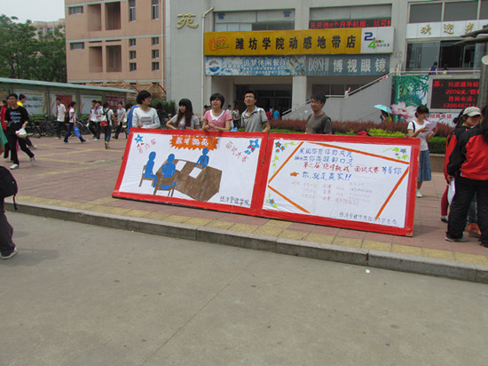 此次大赛旨在提高我校学生未来求职道路上的竞争力,同时也为企业与学校、学生之间开展更广泛的交流,使学生能够深入了解企业的需求,做好企业规划以应对日益激烈的就业竞争,达到学生实现自身价值和企业发展的双赢。经管团总支的全体成员近期对此次大赛进行了宣传,今天中午他们采用宣传刊板和口头宣传的形式向过路的同学详细介绍面试大赛的相关事宜和大赛流程,最终宣传活动取得了良好的实际效果。