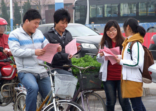 我们的同学分为3组,分别在3个路口对行人进行交通安全知识的宣传,帮助他们真正认识到交通安全的重要性,以引起行人对交通安全的真正重视和关注。(马爱群)