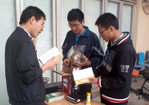 同学们通过相互促销,既锻炼了自己的口才,使自己对产品有了进一步的认识,也增强了自己的应变能力和与人交流的能力,有利于大学生更好的踏入社会,可谓是一举数得。图为负责销售的学生正在详细的向“顾客”介绍自己的产品。(马爱群)