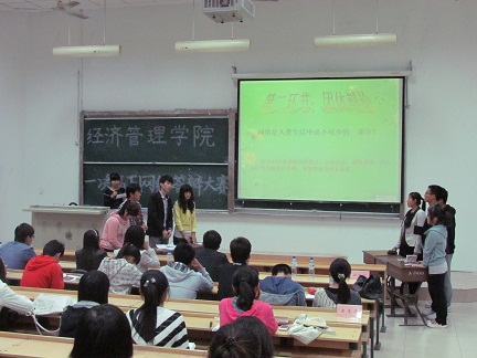 4月19日晚,在致远楼6114教室由经济管理学院学生会传媒部主办的‘一决高下网络答辩大赛’如期开展。学生会部长级以上干部组成评委团参加了此次大赛。