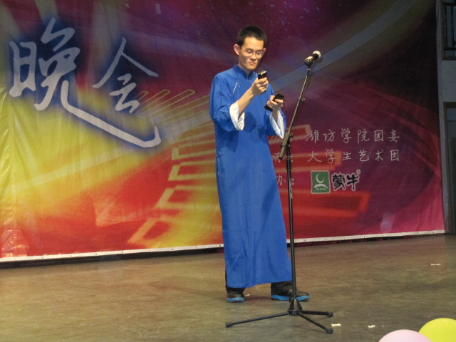 晚会在一首活力四射的《爱的初体验》中拉开帷幕。随后各种节目轮番上阵,异彩纷呈,这其中包括乐队演奏、歌曲串烧、秧歌、绕口令、大双簧等多种形式。舞蹈《魔方》更是将晚会又一次推向了高潮。舞起乐鸣,四个曼妙身姿的女子演绎了四种风格迥异的舞蹈,民族风与现代舞的完美结合不时博得了在场观众的阵阵掌声。