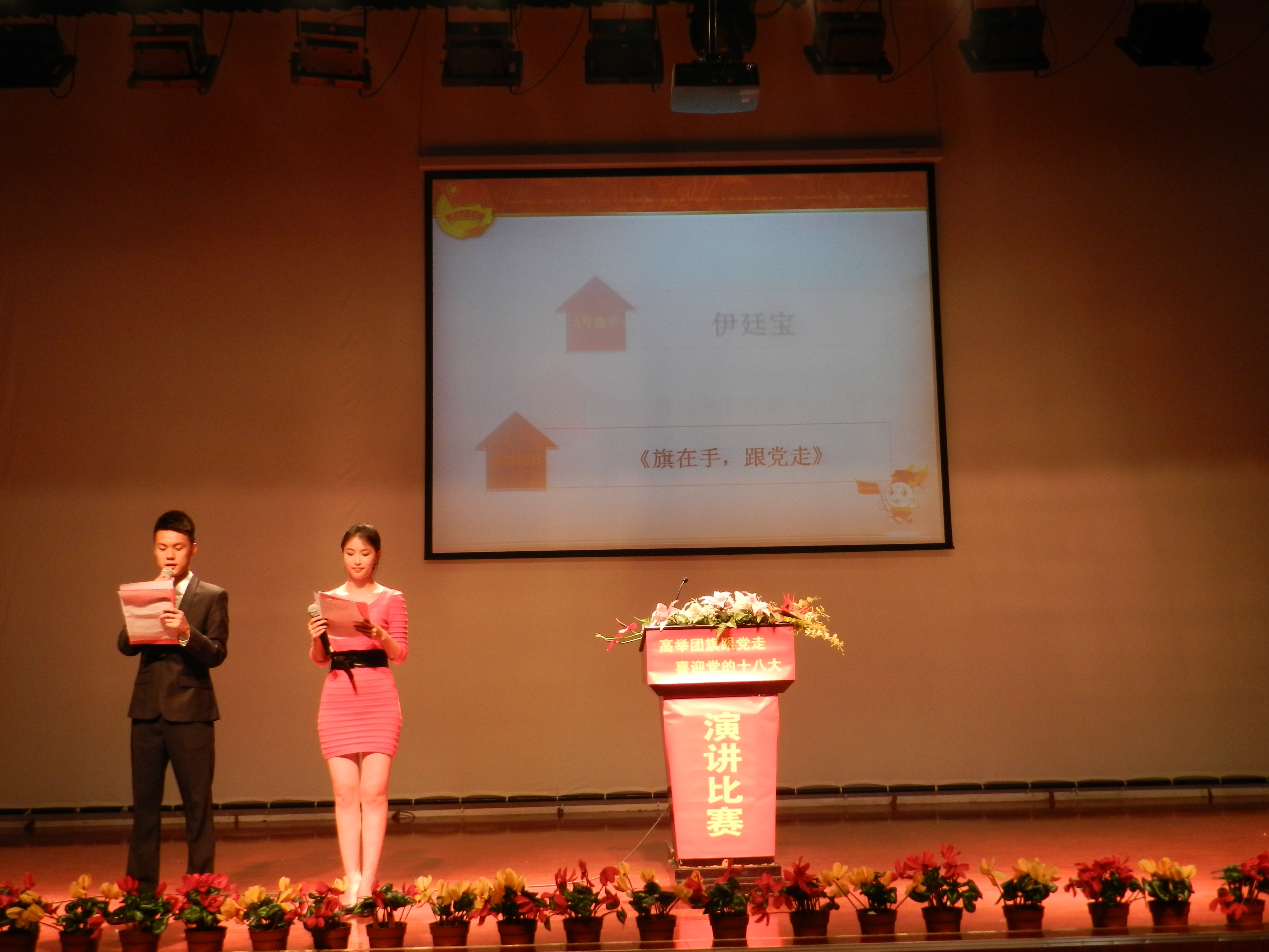 5月25日下午,由潍坊学院团委主办,化学化工与环境工程学院团总支承办的潍坊学院“移动杯”第十二届大学生科技文化艺术节“高举团旗跟党走,喜迎党的十八大”主题演讲比赛,在图书馆报告厅隆重举行。潍坊学院党委委员、副院长邢同学出席了演讲比赛,有关部门领导及500多名师生观看了比赛。
