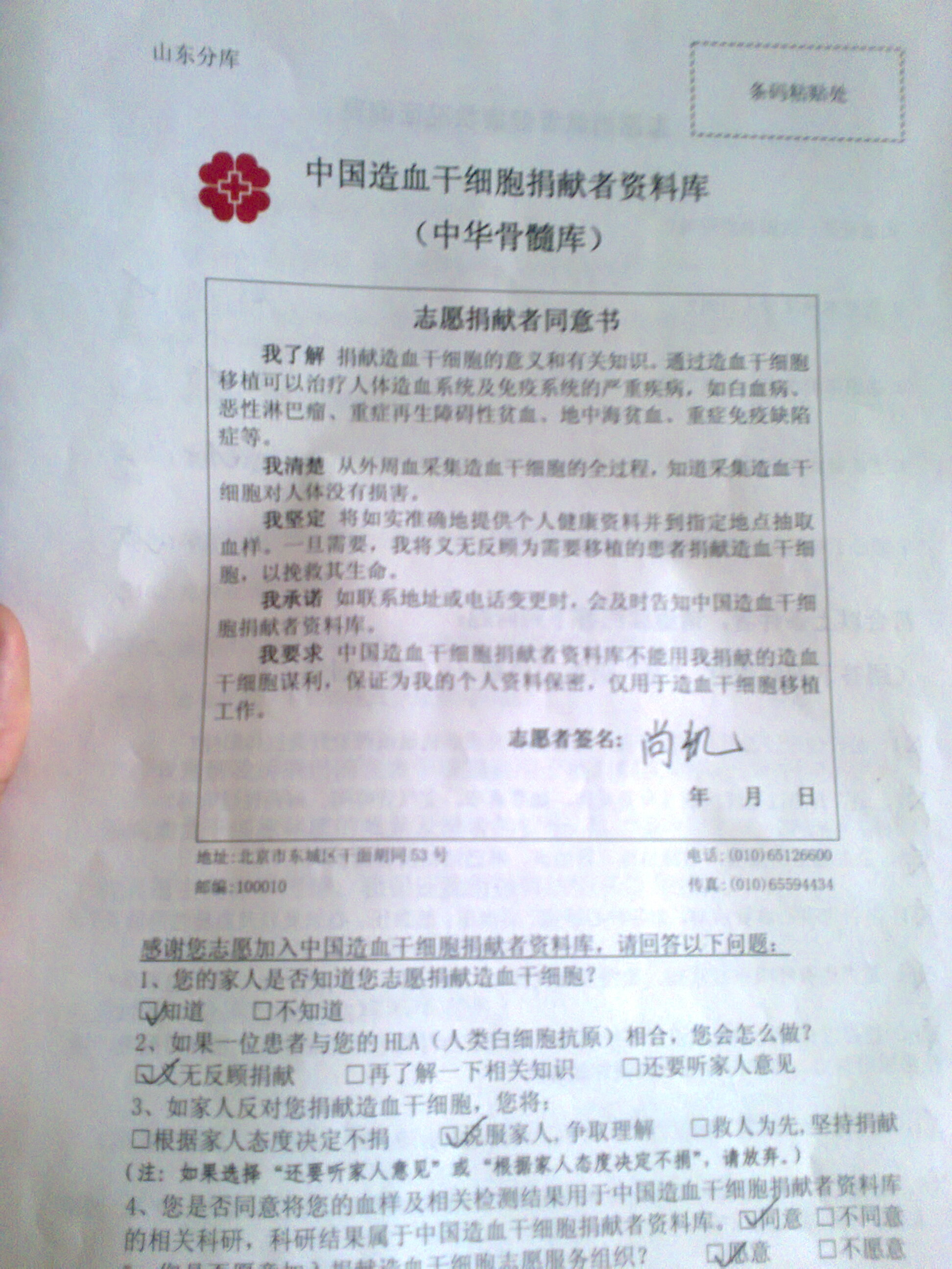 捐献开始后,他们坚定填写了捐献同意书和登记表,在采集血样处,他们挽起衣袖,让医护人员采集血液。他们表示,为自己能成为造血干细胞捐献者资料库中光荣的一员而感到无比骄傲。同学们说:“希望能用自己的血样,为白血病患者多带来一线生的希望,拯救更多的生命,将爱心与希望传播到社会的每一个角落。”据了解,正常人捐献造血干细胞,于己无害,但对于很多身患白血病等血液疾病的患者来说,却意味着很大的“生机”,有可能我们的血样就与他们其中的一个配对,这样他们治愈的可能性就大大增加了。志愿者们无私的行为值得我们学习与发扬,他们用坚定的信念鼓励着患者一步步走向健康。