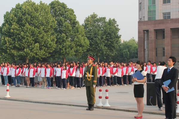 升国旗仪式6点钟准时开始,伴随着庄严的国歌声,鲜艳的五星红旗冉冉升起,全体师生行注目礼。仪式结束后,11级学生代表刘润德做了题为“喜迎十八大,青春献给党”的演讲,他呼吁同学们要努力学习、发奋图强,以自己的实际行动为十八大献礼。最后张书记发表讲话,他肯定了前一阶段我院同学取得的各项成绩,并提出了以后的奋斗目标,希望同学们追随党的步伐,勇往直前,开拓创新,以最好的姿态迎接党的十八的胜利召开。