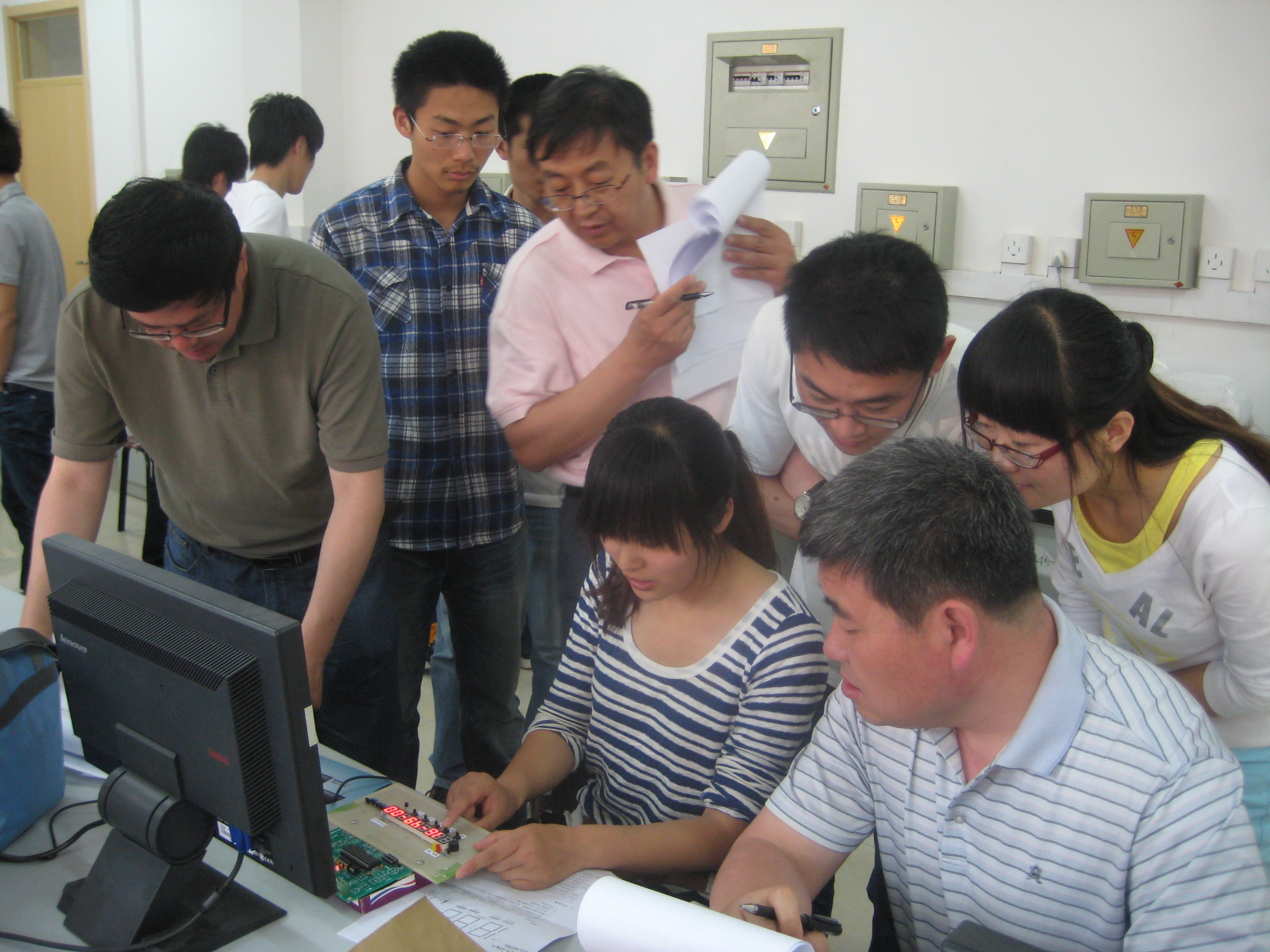 信控、物理、机电、化工学院参加了此次大赛。大赛上各学院的学生纷纷向老师展示自己的研究成果,老师对同学们的作品提出了自己的意见和改进的建议,并对作品打了分数。我们信控系的学子展出了多功能数字钟、点阵电子显示屏制作、交通信号灯自动控制系统、自动控制升降旗系统、实用电子称等优秀作品,并获得了优异的成绩。其他院系的学生也不甘示弱,展出了蔬菜切割机、汽车鸣笛系统、便携式打气筒等作品。这次大赛上各学院学生相互竞争相互交流相互学习。不仅增加了知识而且加强了各学院学生之间的交流增进了友谊。