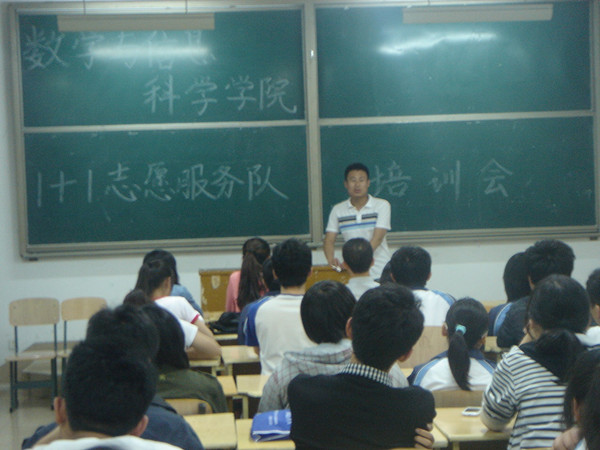 5月11日晚,数学与信息科学学院召开了1+1志愿者培训会,此次会议主要针对志愿者的义务、责任进行了讨论。此次培训会由郝春玲主持,我院学生会副主席郝立坤对志愿者活动进行了详细介绍,让同学们更加充分的了解到作为1+1志愿者应尽的义务,同学们也积极响应,力争做好志愿者服务的各项工作。