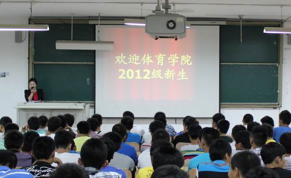 本报讯:9月8日晚7时,体育学院2012级新生欢迎大会在T301教室热烈举行。2012级新生辅导员付雯雯老师和全体新生出席了本次会议。
