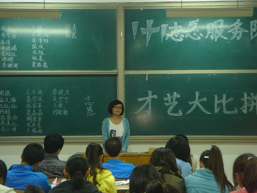 本次活动由服务队队长周鹏和各骨干成员认真筹划。活动分为口才展示和才艺展示两个部分,经过赛前同学们的认真准备,活动现场的气氛显得轻松而愉快。第一轮口才比拼,参赛选手摒弃以往背稿的习惯,用自己的真诚和生活中的切身体会阐述着自己想加入“1+1”志愿服务队的强烈愿望,用真心感动了现场的每一个人,让现场的每个人都感受到了“1+1 爱+爱”的真谛。比起第一轮的口才展示,第二轮的才艺展示更是让大家满怀期待。其中内蒙姑娘就用家乡舞赢来了大家自发的掌声,紧接着很多选手用美妙、感人的歌声吸引着在座的每一个人,掌声接连不断。