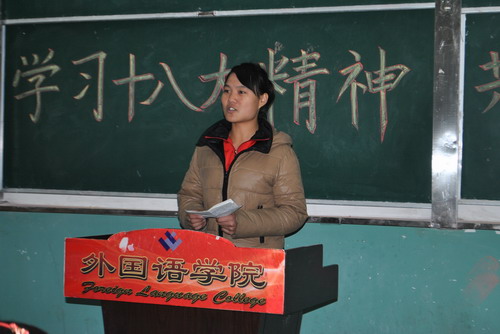 为深入贯彻学习党的十八大精神,营造良好的学习氛围,进一步丰富同学们的校园文化生活,培养同学们对党和国家的热爱之情,外国语学院于11月23日下午在3#233教室举行了以“学习十八大精神,共创新时代辉煌”为主题的演讲比赛。参加比赛的是2011级和2012级部分同学。