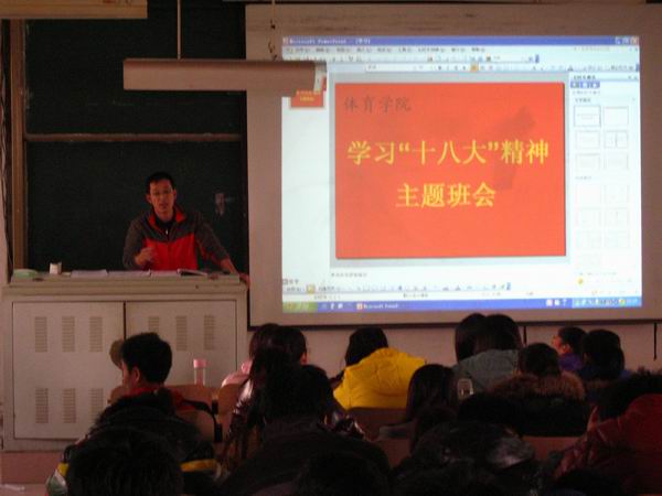 11月20日,为认真学习贯彻十八大会议精神,体育学院在闻韶楼6301教室组织2010级全体学生学习“十八大”精神,团总支书记、辅导员办公室主任魏星出席了本次会议。