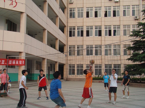 08级学生毕业在即,为给自己和母校留下最后的美好的回忆,6月7日下午,由外国语学院大学生活动中心组织的“毕业生告别母校排球友谊赛”在外国语学院院内拉开帷幕。以学生会前任主席张建辉为队长组成的毕业生代表队,和以张超为队长组成的在校生代表队展开了激烈的对打,由活动中心中心主任担任主裁判。