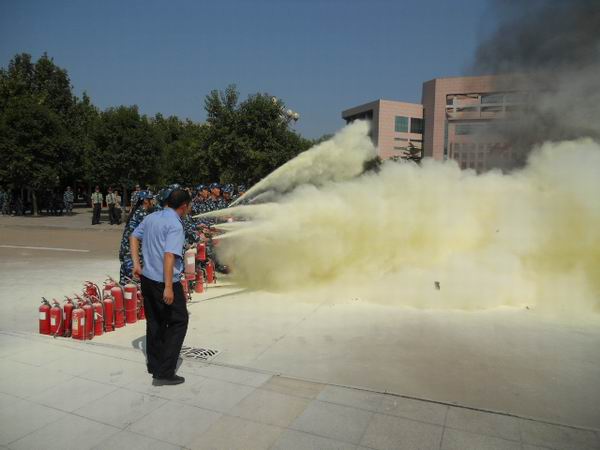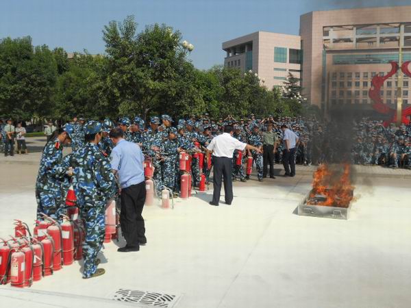 来自消防部队的军官首先给同学们进行消防防灾安全教育,提出进行消防演练对增强高校新生的忧患意识和国防观念,提高防灾、自我保护和应变能力有着十分重要的意义。大学生在初、高中阶段接受的安全防范理论教育多于实践教育。但实际演练可以切实提高大学生的防范操作水平,提高自我防范意识和应急能力。随后,教官们让学生实际操作一次,体育学院的郑博等5名同学在认真听取关于灭火器的使用方法后,自告奋勇参加了学校的灭火演习,面对熊熊燃烧的大火,他们并不畏惧,并通过正确操作灭掉了大火。