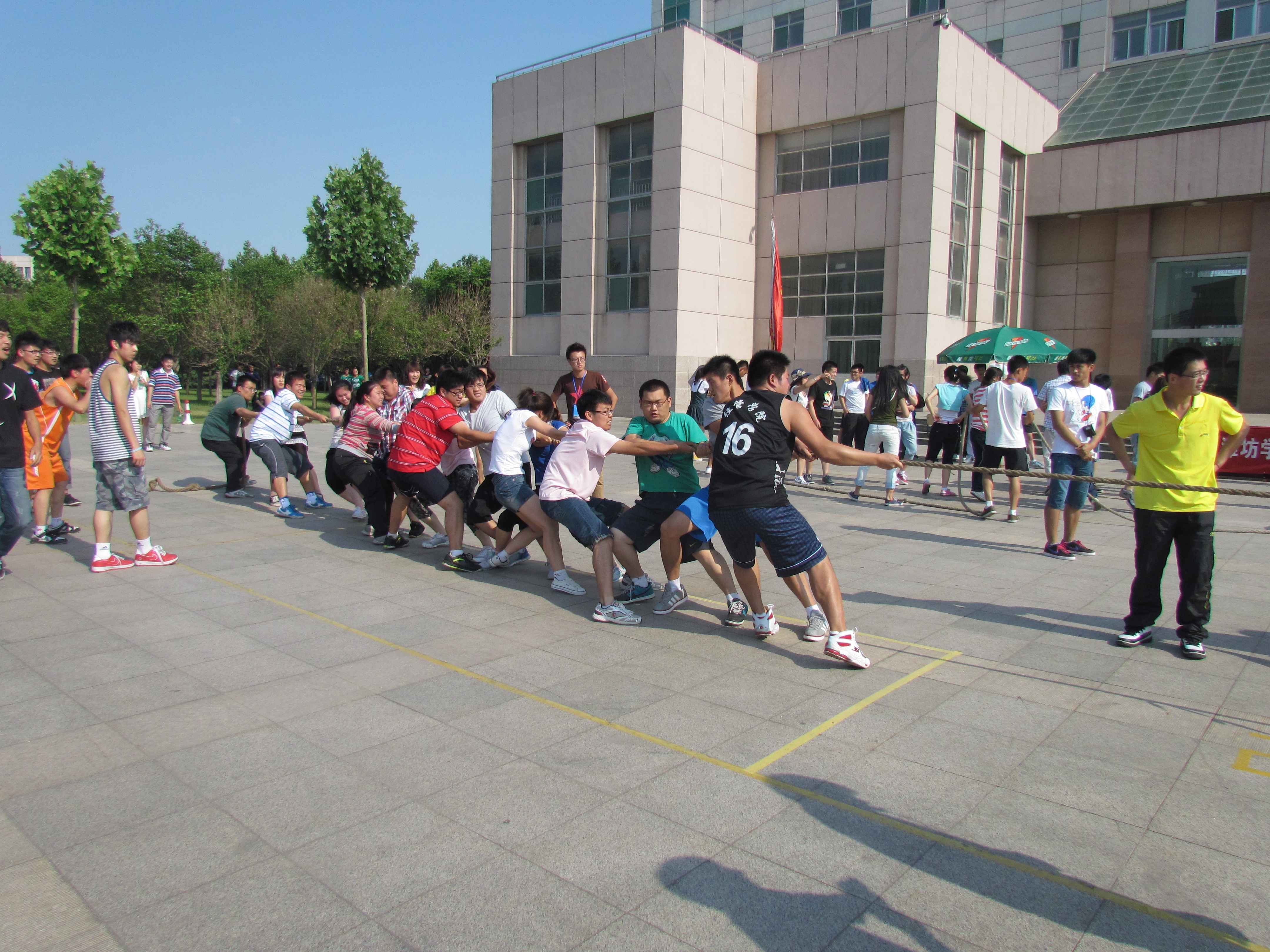 5月31日下午,作为第十二届科技文化艺术节活动之一以“聚心力,展特色,创名校”为主题的拔河比赛在行政楼后面的广场拉响战斗的号角。来自各二级学院的参赛队伍积极迎战,同学们一扫往日的沉闷,个个生龙活虎,斗志昂扬。 比赛开始了,只见经管的队员们紧握长绳,两腿呈弓步型,当比赛哨声响起时,队员们使劲往后拉,憋得脸颊通红。两边的队伍势均力敌,绳子中间的砝码成了墙头草,在两边犹豫的徘徊。赛况异常激烈,硝烟弥漫,场上的队员们面红耳赤,青筋爆粗。 赛场上是队员们一二一二的口号声,赛场下,观战的同学们都自动组成拉拉队为自己系的队伍加油鼓劲。随着进入白热化的战况,拉拉队竭力大叫“加油”,试图在气势上压倒对方,大有火上浇油之势,一点也不比队员们轻松。他们冲着队员们大喊,手臂指挥他们向后退,好像隔空传功。震天的加油声中,经济管理学院赢得了前两场比赛。在最后的决赛中,凭借稳定的发挥,我系取得了第二名的好成绩。 此次拔河比赛,不仅使我系同学更加团结一致,齐心协力,增加了同学之间的友谊,丰富了学生的课余时间,,促进我系和外系的交流,同时,也丰富了此次大学生科技文化艺术节,让学生的校园生活更加丰富多彩。