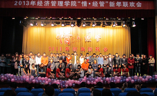 温暖严冬,喜迎元旦。2012年12月20日,由经济管理学院团总支、学生会主办,交通银行、团购堡协办的以“情·经管”为主题的新年联欢会在图书馆报告厅成功举行。出席这次演出的领导有潍坊学院党委副书记牛钟顺,经济管理学院党总支书记姚秀琦,辅导员办公室副主任徐会全,以及经管学院各辅导员老师和同学们。