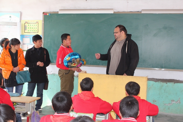 志愿者们为学校送去了篮球、足球、羽毛球和跳绳等体育用品,为每一名学生送去了铅笔、圆珠笔、作业本、橡皮等学习用品。外教Kevin Kimlinger和志愿者们还为那里的学生们上了一堂精心准备的英语课。课堂上,Kevin耐心讲解,志愿者们准确翻译,学生们踊跃发言,课堂气氛轻松而愉快。利用课余时间志愿者们又与那里的学生们一起开展互动游戏,鼓励他们树立信心,受到学校老师和孩子们的欢迎。