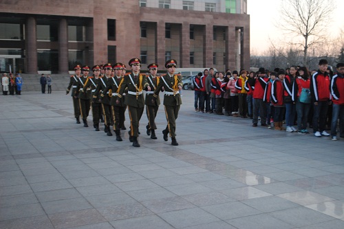 3月25日,外国语学院在行政楼前举行了以“厉行节约,光盘行动”为主题的升旗仪式。外国语学院党总支书记李瑞民、各级辅导员老师以及2010、2011、2012级全体同学和全体学生党员参加了本次升旗仪式。