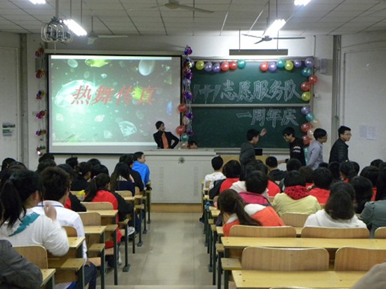 4月12日晚7:00,数学与信息科学学院“1+1志愿服务队”在8#112举办了一周年庆典。出席本次活动的有青年志愿者联合会主席吴栋,1+1志愿服务队队长周鹏,十八个院系的志愿队长,数学学院学生会副主席张海龙、李银涛、高占、郝春玲,副秘书长张淑洁、王咏梅以及各部部长。参加庆典的还有1+1志愿服务队成员以及数学学院12级全体学生。
