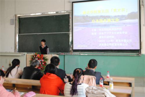 外院院长王勇上台致开幕词,他用一句日语开头,表达了他对本次演讲比赛圆满成功的美好祝愿及期望选手们都能够获得理想的成绩,极大地调动了现场观众的热情,同时也鼓舞了各位选手的士气。本次比赛共分命题演讲、评委提问两个环节。比赛正式开始,选手们有秩序上台演讲。选手们满怀自信、彬彬有礼,精彩的演讲将自己的能力展现到极致。他们各显其能,声音时而高亢洪亮,时而舒缓轻柔,表达感情淋漓尽致,流利的口语及精彩的现场表现,赢得台下阵阵掌声。演讲后的评委提问环节中,他们以较强的语言组织表达能力博得评委的一致好评,幽默诙谐的话语引的现场观众笑声不断。比赛中间,还邀请了日语专业大一的同学演唱歌曲,优美的音调使现场评委及同学们陶醉其中,为大家带来了一场完美的视听盛宴。此次演讲比赛与往届不同的是,特别选择口语水平较高的学生担任主持人,目的在于给学生提供更多的锻炼平台。