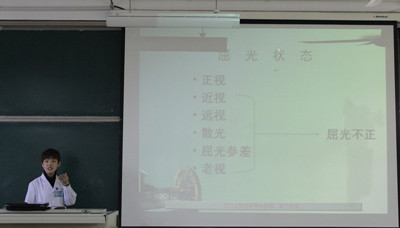 不到下午两点,同学们就来到了现场等待着。期间专业的医师为部分同学检查了视力,也让他们对同学们的视力状况有一个简单的了解。讲座中付梦军医师告诉大家:“近视的原因主要有遗传、看书、玩电脑、玩手机等,并且在大学生中,近视的同学占到了将近90%,矫正视力势在必行。”接着付医师又跟大家介绍了配戴框架眼镜、隐形眼镜、屈光手术等矫正视力的方法,并对屈光手术做了详细的讲解。讲座结束后,现场进行了抽奖,奖品是为免费为他们治疗近视。