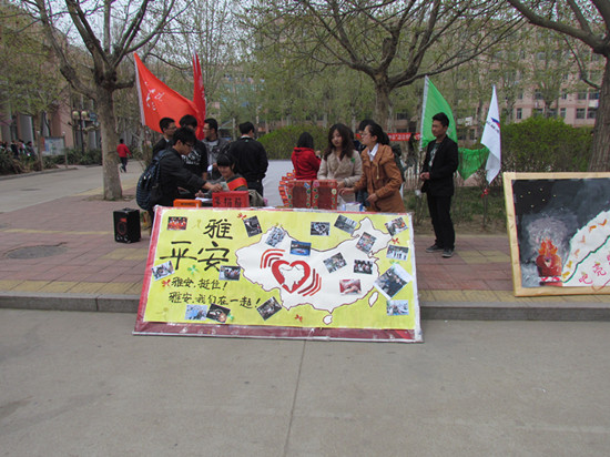 自4月20日四川雅安地震发生以来,雅安人民的生活状况受到全国各族人民的深切关注,也时时牵动着经管学子的心。虽然我们无法第一时间进入灾区,虽然我们无法为他们分担丧失亲人、无家可归的痛楚,但我们却可以尽己所能给他们送去无私的爱与帮助。经管学子们用自己的实际行动感召全院师生为灾区捐款捐物,奉献爱心,捐物内容以现金、彩条布、雨具为重点,其次是必要的日常生活食品与用品,其中彩条布用于未找到住宿的灾民供晚上过夜使用,可防雨。他们承诺必当秉承公开、公正、透明、规范的原则,及时将捐赠款物送达到灾区群众手中,尽力解决灾区的实际困难。广大经管学子纷纷响应号召,积极踊跃的奉献爱心,传递人间真情。