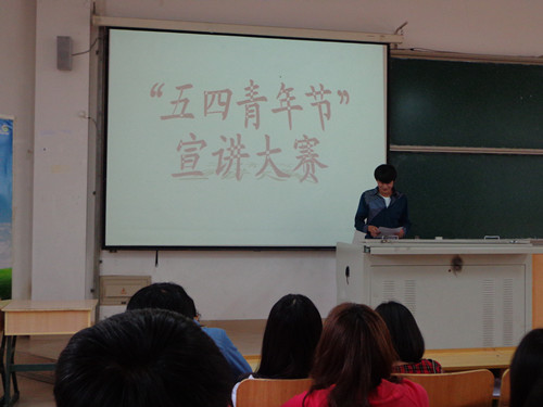 大赛在主席于晓枫的讲话下拉开了帷幕,各选手认真在候场区准备,有秩序地进行比赛。第一个上场的是数学与应用数学一班的选手,开场的气势让在座的各位都打起了精神,其慷慨激昂的陈词更是带动了不少大一同学的爱国热情。紧随其后的选手也不甘示弱,用自己特有的语言感染在座的每一个人。比赛气氛越来越活跃,接下来的各位选手们各具特色,有的做了精彩丰富的PPT,有的还做了电子杂志。大赛评分采取了新颖的打分形式,除去各评委的分数,现场随机抽取了20名观众进行打分。打分之余还播放了有关五四运动的部分短片。优秀的宣讲氛围、丰富的参赛形式、新颖的评分方式使得本次比赛取得了圆满成功。