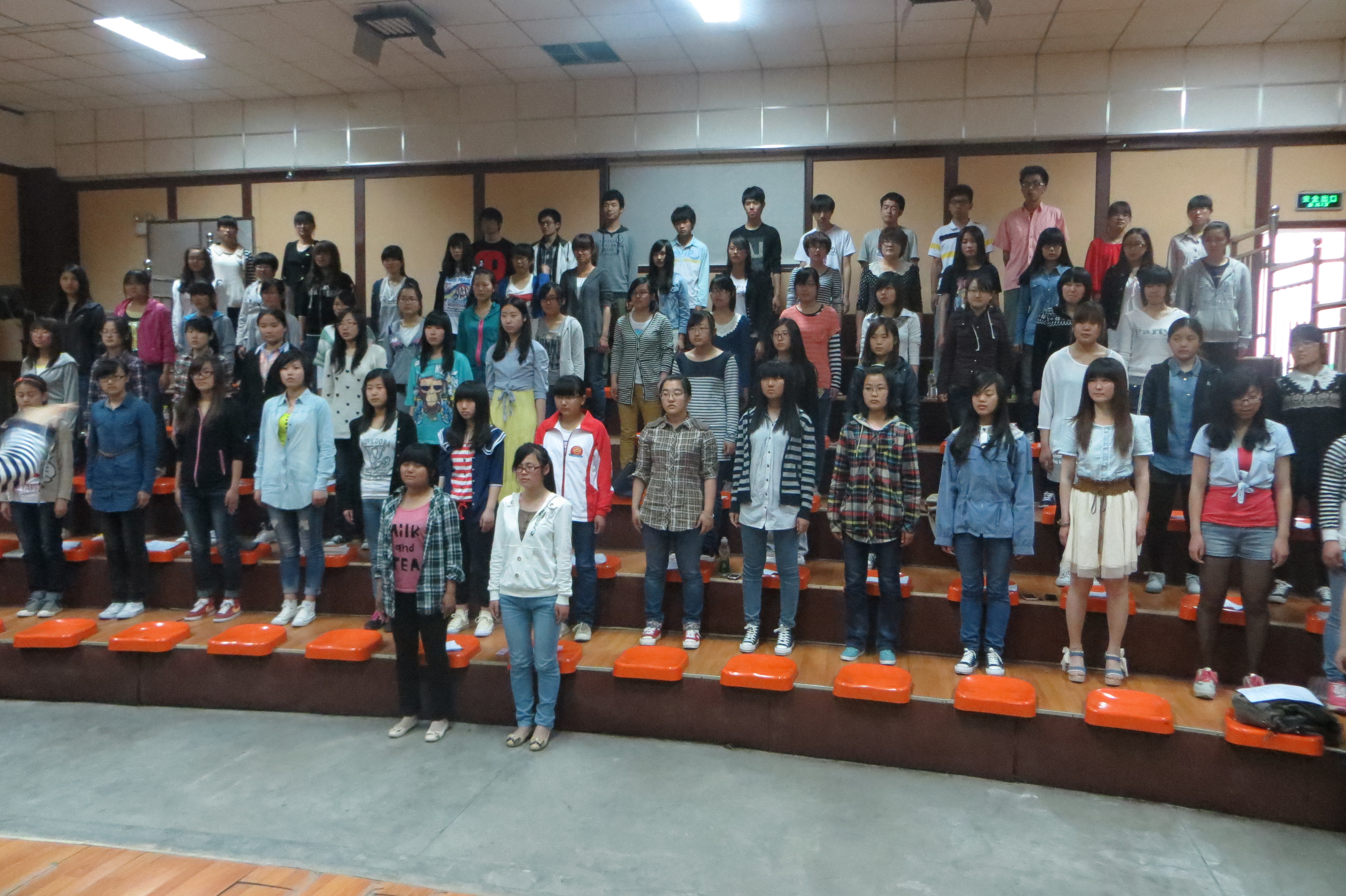 为迎接5月中旬的音乐盛宴,教师教育学院积极响应号召,于5月7日在7411多媒体教室正式开始展开大合唱训练。本次训练邀请到了音乐学院2010级的罗红同学担任本次合唱训练的指导教练,80名来自教师教育学院2012级不同专业的同学参加了本次大合唱训练,部分学生会主席团成员以及各部门部长也到达训练现场观看训练。