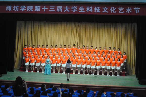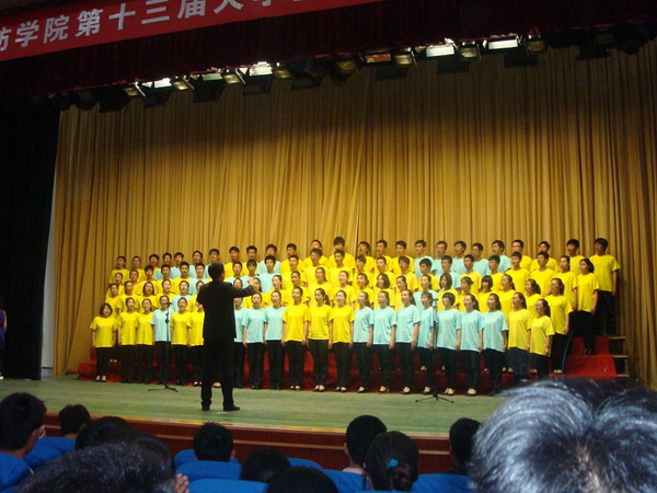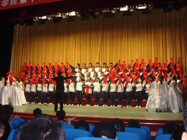比赛在观众热烈的掌声中拉开了序幕,各学院合唱队为大家献上了精彩的演出。整场比赛高潮迭起,精彩不断。外国语学院合唱队青春靓丽的服装,美妙动人的歌喉,整齐划一的动作让人眼前一亮;化学化工与环境工程学院合唱队的队员们身着黄、蓝两色的衣服,拼成“化工”二字,极具创意的想法赢得了观众们热烈的掌声;建筑工程学院合唱队别出心裁,12名身穿白裙的舞者在队前翩翩起舞,其余队员手举红色绸缎,用手臂的起伏做出波浪的形状,最后高举红色绸缎的造型为大家带来了无限惊喜;美术学院合唱队则以昂扬的斗志,饱满的精神状态赢得了评委的一致赞赏……各学院合唱队的精彩表演一次次将比赛推向了高潮,合唱队员们用激昂的歌声诠释了青春与梦想。