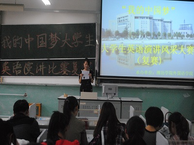 为激发同学们英语学习的热情,丰富课外文化活动,5月20日下午,由潍坊学院团委、校学生会主办,外国语学院团总支协办的“我的中国梦”大学生英语演讲比赛复赛在外国语学院举行。