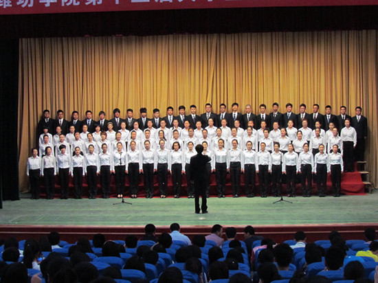 功夫不负有心人,经过一个多月的辛苦训练与耐力考验,经过初赛的激烈竞争,5月30日晚7点半,潍坊学院大学生科技文化艺术节合唱比赛决赛在图书馆报告厅成功举行。出席比赛的领导有潍坊学院院长王守伦、党委副书记牛钟顺、纪委书记马茜华及各二级学院学生。经济管理学院以优异的成绩进入决赛。
