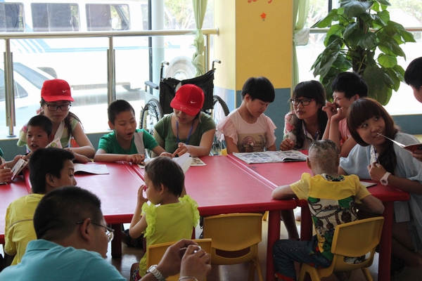 潍坊市儿童福利院主要承担孤残儿童的收养、医疗、康复、教育、生活和娱乐等功能,儿童福利院目前收养200多名孤残儿童,他们大部分是被父母遗弃的残疾婴儿,还有部分因失去父母无人照看的孤儿。此次北海国际学院的学生志愿者为福利院的小朋友带去西瓜、荔枝等水果以及饼干等物品,志愿者还与福利院的小朋友一起学习、做游戏,大哥哥、大姐姐的到来让福利院的小朋友们非常高兴,孩子们的脸上露出开心的笑容。