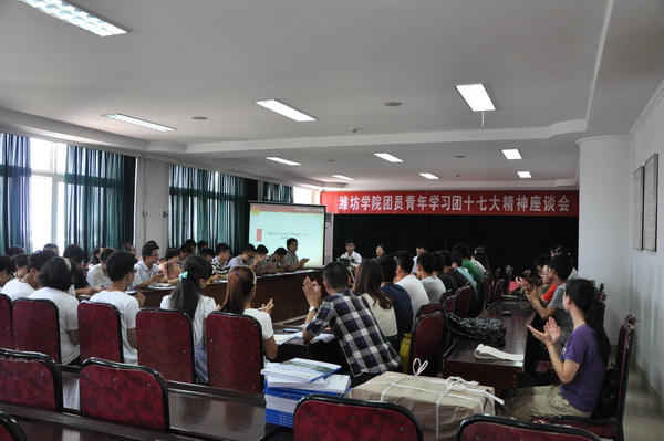 座谈会上,各级团学组织的代表就学习团十七大精神发表自己的观点。校学生会副主席周天磊谈到:“团十七大的报告在回顾中国青年运动和共青团走过的不平凡历程的基础上,围绕实现“中国梦”的时代主题,明确提出了“八个必须”的基本要求,这是团十七大报告的亮点,也是共青团团结带领广大青年创造时代新业绩必须牢牢把握的重要原则。”青年志愿者代表李梦华谈到:“当代青年注定与实现中国梦的征程同行,既是走在时代前列的奋进者、开拓者、奉献者,也将是分享时代机遇的受益者。西部计划组织实施十年来,我校共向西部、向新疆生产建设兵团输送了66名优秀志愿者,希望大家今后将一如既往地支持西部志愿计划的相关工作。希望更多的同学能够能够,“到西部去,到基层去,到祖国和人民最需要的地方去”,在西部找到合适舞台,实现自己的‘青春梦’和‘中国梦’。”