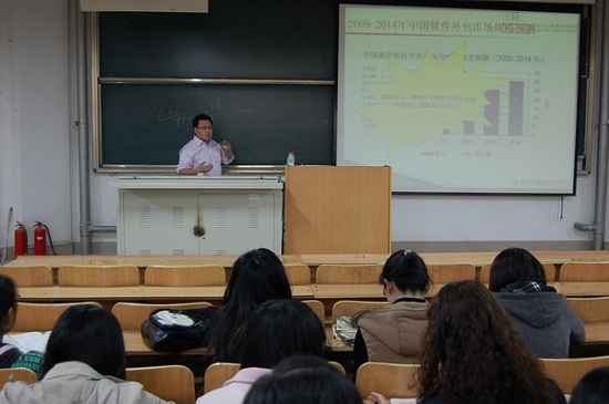 本次专题讲座分为“2013级物联网新生入学专题讲座”、“软件外包专业解析”、“职场日语”三个主题进行。下午4时,卢玉强工程师在7303教室为2013级通信工程(物联网)专业的同学进行了“2013级物联网新生入学专题讲座”。卢老师通过传感网和物联网等物联网的应用方向为例向同学们做了详细的阐述,通过卢老师详尽的讲解,加上精心准备的PPT,同学们对物联网有了更深的了解。同时,刘继云工程师在7306教室为2013级计算机科学与技术(软件外包)专业的同学进行了“软件外包专业解析”的主题讲座。刘老师在为同学们解析了“软件外包”的定义的同时,还对软件外包的现状和未来进行了详细的描述。刘老师也对同学们提出了两点要求,第一,希望同学们扩大知识面,提升专业技能;第二,希望同学们注意把自己的所学专业和社会需求相结合起来,注重实际技能的培养。晚19时,刘小茜老师在7217教室为2011级计算机科学与技术(软件外包)专业的同学进行了“职场日语”的主题讲座。在讲座中,刘老师就日语的学习方法以及日语所要达到的等级要求做了明确的说明,并回答了同学们的问题。