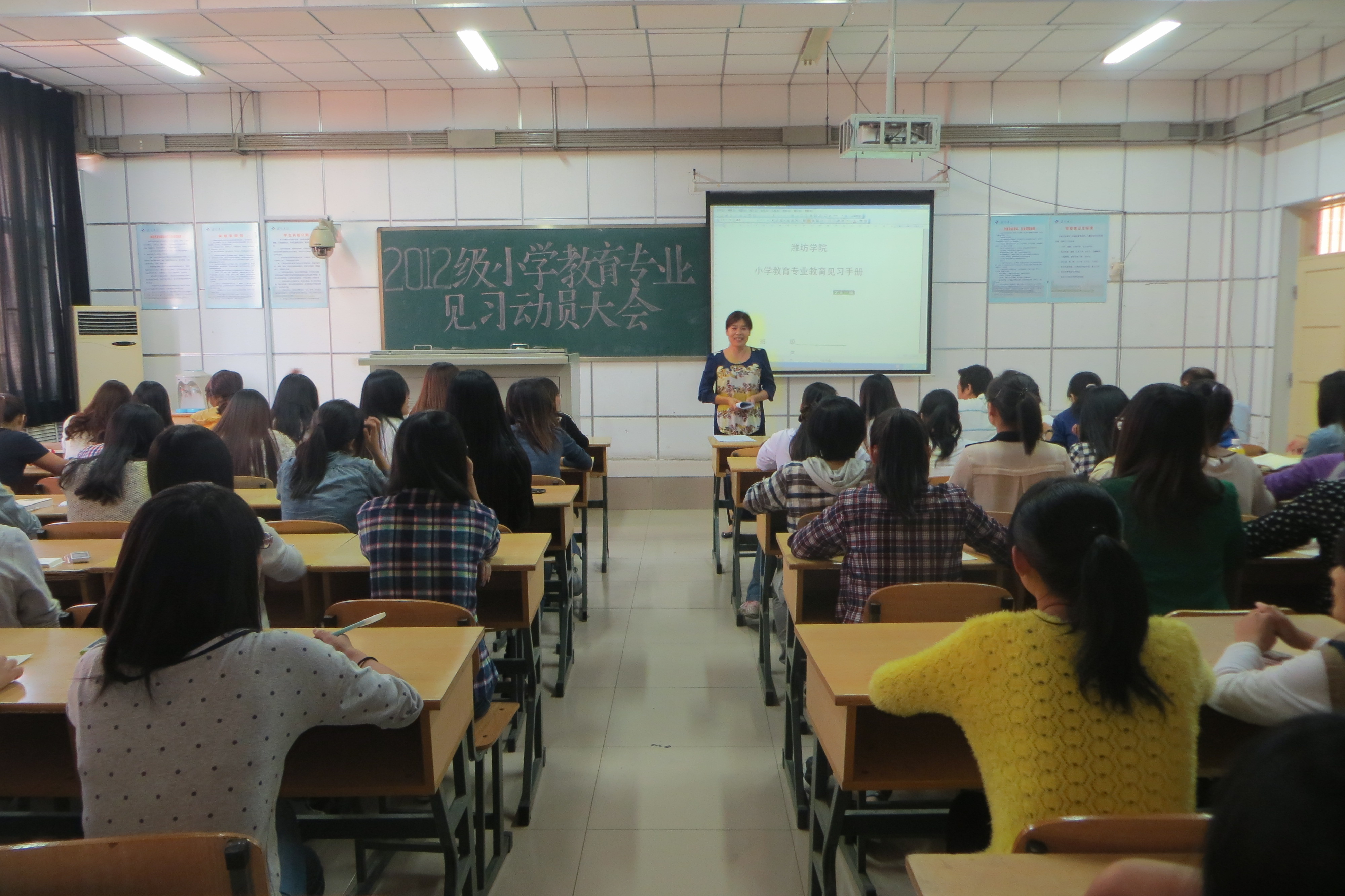 10月13日下午4点,教师教育学院于天一楼7425教室召开了2012级小学教育专业见习动员大会。出席本次动员大会的有孙慧英、刘向前、孙晓清、张爱华、朱勇等几位专业课老师。
