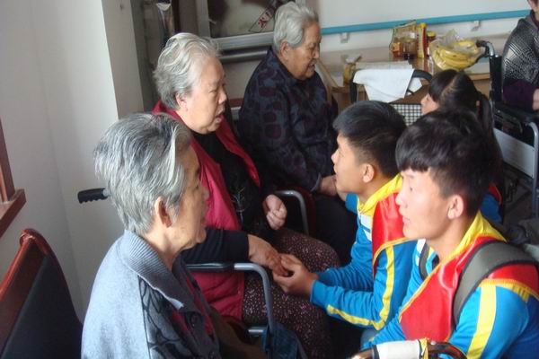 值此潍坊学院62周年之际,我院志愿者服务队队员身披宣传绶带,为潍院献礼。整齐的单车队伍行进在马路上,成为一道亮丽的风景线。到达敬老院后,队员们向老人们细心地讲解日常生活中身体保养方面的知识,希望他们能健康快乐。接着,队员们带来了精心排练的节目,经典革命老歌,柔美健美操,刚柔并济的武术,动感舞蹈等,精彩纷呈的节目让老人们都拍手称赞,同学们上前和爷爷奶奶们聊天,老人们亲切的拉着同学们的手,脸上洋溢着幸福的笑容。屋内暖意浓浓,沉浸在欢声笑语中,看到老人们开心的笑容,同学们心里充满了满足。临走时,看到老人眼中闪动着感激的泪水,大家深刻体会到老人热切渴望被关心的感觉。同学们以后会常去探望老人,给他们带去温暖和快乐。