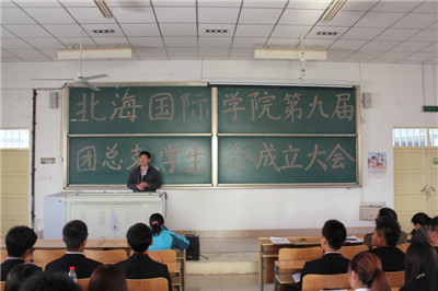 为了更好地开展工作,增强老师与同学们的沟通交流,10月24日下午两点北海国际学院在7502教室召开第九届团总支及学生会成立大会。出席本次大会的有北海国际学院党总之副书记张聿高、辅导员办公室副主任赵鹏俊、全体辅导员以及新一届学生会全体成员。此次学生会成立大会伴随着领导进场的掌声正式开始。大会由朱珊珊老师主持,总共分为三个环节。