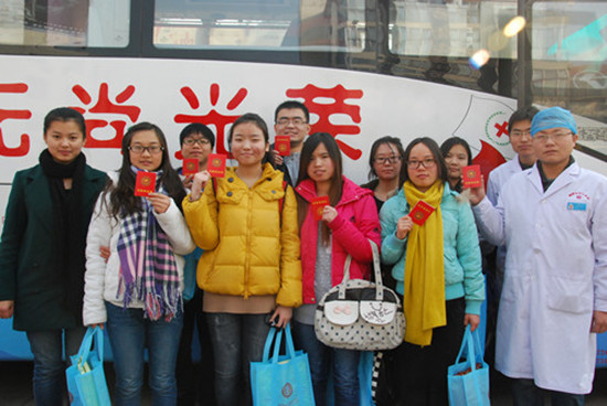 日前,外国语学院团总支学生会1%爱心基金为外院特困生捐赠了保暖内衣,受捐赠的特困生主动要求用义务献血的方式感恩回馈。12月7日上午,在外院白鸽志愿服务中心主任李志辉的带领下,8名特困生志愿者一起到众客隆服饰广场采血点义务献血。