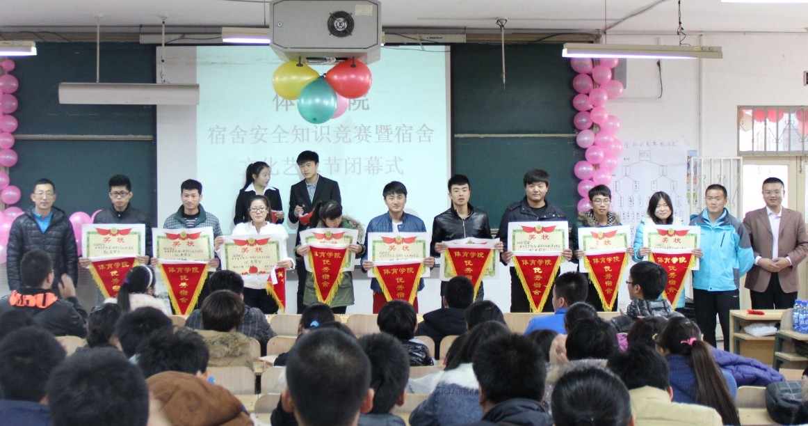 首先进行的是别开生面的安全知识竞赛,22支代表队通过竞赛的形式和大家共同学习安全知识。两两之间进行答题比赛,分高者晋级,分低者淘汰。其间还增添了抢答环节,竞争略显激烈。经过前四轮激烈的角逐,青青草原队和小土豪队脱颖而出,进行冠军争夺。又一番楚汉之争,青青草原以绝对的实力登上冠军的宝座。安全知识竞赛到此结束。活动进入第二环节,由本次活动代表为大家展示精彩的ppt,让大家共同领略了优秀宿舍的风采。随后,魏老师为本次宿舍文化节进行宣布获奖名单,进行颁奖仪式。由三位嘉宾为6个宿舍安全优秀征文奖,安全知识竞答赛获奖队,6个进步宿舍奖,9个优秀宿舍颁奖,并与获奖者合影留念。