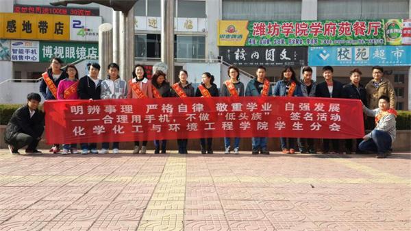 为了贯彻落实中共中央办公厅印发的《关于培育和践行社会主义核心价值观的意见》精神和落实学校在全体学生中深入开展社会主义核心价值观教育系列活动的通知精神,用社会主义核心价值观引领青年学生的发展,促进青年学生健康成长,3月16日下午,化学化工与环境工程学院在第二餐厅门前举行合理利用手机不做“低头族”的签名活动。