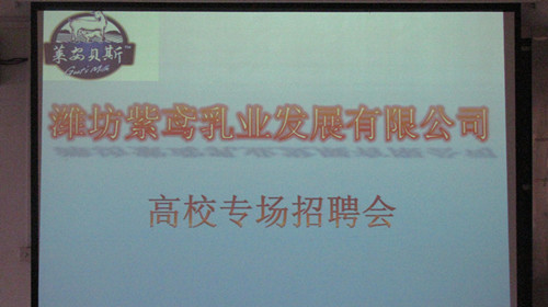 阳春三月,潍坊紫鸢乳业发展有限公司在经济管理学院举办的招聘大会在致远楼401教室成功举办。参加本次会议的有潍坊紫鸢乳业有限公司的负责人以及面临毕业的大四学子。