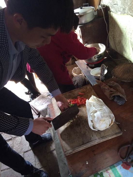 一到奶奶家中,志愿者们看到杨奶奶正在做中午饭,便立刻上前帮忙,有的洗菜,有的切菜,还有一些志愿者忙着帮奶奶打扫院子,开窗通风。奶奶做好饭后就到屋子里和志愿者们拉家常,热情的奶奶一直让大家吃瓜子吃花生。年迈的奶奶听力已经大大减退,可是志愿者们还是不厌其烦的一次又一次重复自己的话,只为了让老奶奶能受到大家的问候与关心。前去的志愿者中很多都来自外地,与老奶奶的沟通都要通过本地志愿者翻译,可尽管这样,那个不到10平米的小房子里依然充满欢声笑语。志愿者们发现老奶奶没有吃平时大家送去的补品便告诉奶奶让奶奶每天吃一点。时间总是很快的,又到了跟奶奶道别的时候,志愿者们都依依不舍的跟奶奶说再见,并表示,以后一定会经常来看望杨奶奶,陪奶奶多说说话。