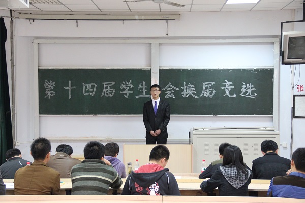 大会首先由主持人宣布此次竞选的要求,本次竞选共分为三个环节,此次参加竞选者的出场顺序由抽签产生,然后竞选者先按抽签顺序上台发表3-5分钟的竞选演讲,随后回答评委提出的问题进行现场答辩。竞选现场每一位竞选者都以良好的精神面貌和高昂的热情做了精彩的演讲。演讲中有的选手针对自己以往参与的学生工作做总结和反思;有的表达了参与学生工作收获和成长;同学有的同学表述了自己假如竞选成功后的详细的工作计划和以后学生会部门的建设。同时,每一位选手对于评委提出的每一个问题都做了认真的回答。通过参加此次竞选同学们又得到了一次锻炼,也很好的体现出了物电学子的对参与学生工作的极大的热情和信心。本次竞选结果由辅导员老师、上届学生会主席团推荐、辅导员办公室全面权衡后公布名单。