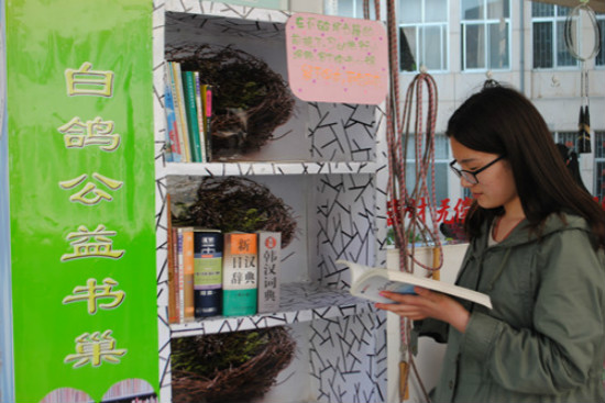 为了拓宽学生的知识面,读更多的好书,近日,外国语学院在院内设立了“外国语学院爱心书巢”。这个爱心书巢由外院白鸽志愿服务队承办,他们号召广大师生积极献书。