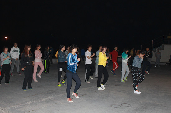 为了增强同学们的身体素质,潍坊学院准备在五月中旬举行健美操大赛,由各个院系挑选出的学生代表参加。经济管理学院的同学们积极响应,精心准备,每天晚上七点在操场的主席台上进行排练。