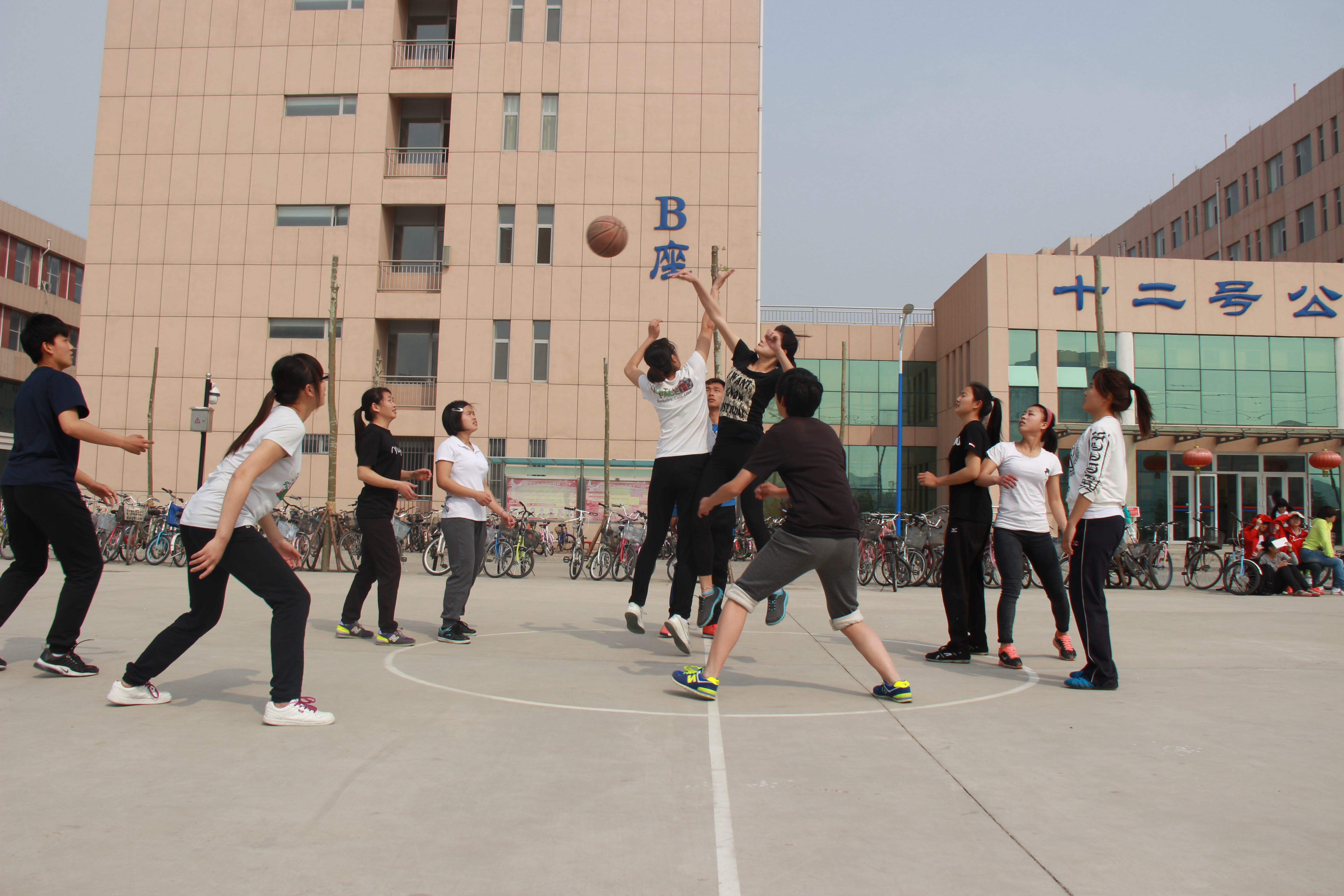 比赛以“以球会友,强身健体”为主题,本着“以人为本,全面发展”的原则,进一步推动体育活动的开展。比赛分三组,男生两组、女生一组。为了能够顺利进行,本次篮球比赛男生组通过抽签的形式决定对手进而进行交叉对抗赛,女生组则通过积分制决出名次,比赛同时进行,绝对公平、公开、公正。比赛期间,队员听从裁判的判罚,不得有异议,场上违规以裁判员的判罚为最终判决,体现了队员们对裁判的尊重。比赛过程中,场上的男女队员奋力拼搏,双方队员之间的抢球、断球、防守、进攻、默契传球、激烈对抗、完美配合使得比赛高潮迭起,精彩不断,充分显示了体育人的风采。场下的观众也热情高涨,鼓掌呐喊声振奋人心。
