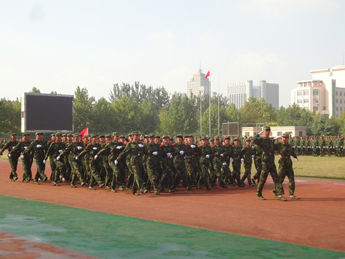 大会在雄壮的国歌声中拉开序幕。全体参训学生排成方阵,整个会场激荡着高昂嘹亮的口号,展现了学生饱满的精神面貌。随后,由各学院组成的方阵进行的分列式表演,同学们严整的军容、整齐划一步伐充分体现了英才学子的飒爽英姿。在课目汇报表演中,表演队员以柔中带刚、精准到位的表演水平赢得全场阵阵掌声。他们秉承“厚德、博学、求是、创新”的校训,以军人般非凡的气质,铿锵有力的步伐迈入体育场;以培养艰苦奋斗的作风,提高思想政治觉悟为目标;以鹰击长空之志气,把口号响亮予庄严的阅兵场;以汗水和毅力展示军训的成果,展现出潍院学子优良的精神风貌。在训练中他们团结合作、拼搏向上,任汗水浸透,任阳光烧灼,不喊苦,不怕累,精神抖擞,斗志昂扬,力求每个动作都完美无缺,从壮志雄心的风貌锤炼了铮铮铁骨,从持之以恒的信念铸就了坚韧意志。