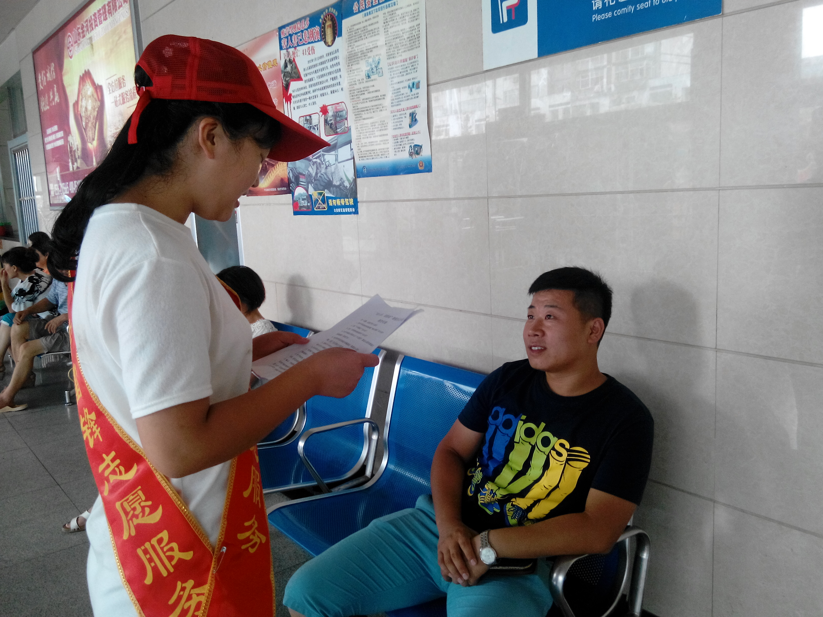 客运站是潍坊最大的客运中心,由于附近便是火车站,客流量很大,是开展调研活动的最佳选择地之一。对于调研团队队员的到来,客运站的值班站长表示欢迎和支持。随后,我们便在简单地自我介绍后对当时在候车室休息的几位乘客进行了社会热点的调研活动,采访过程中,不难发现,乘客们对于当今社会的热点问题都有着自己的关注度,例如,在梦想和现实的平衡问题上,每个人的看法不一,有的人觉得梦想是虚无缥缈的东西,只有立足现在,踏踏实实才是根本。有的乘客则觉得拥有梦想的人是难得的,有梦才有方向,才会认准方向去铺垫未来的路。采访之中,有的乘客很会举一反三,而有的乘客则避开镜头,从中我们也可以从每个人交流之中归纳处事应事的能力,收获之余,欢欣之余,也要反思。
