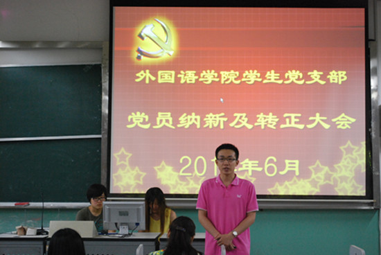 2014年6月19日下午5点整,外国语学院在3236教室召开了党员纳新转正大会,学生党支部全体党员及17名党员共同参加。