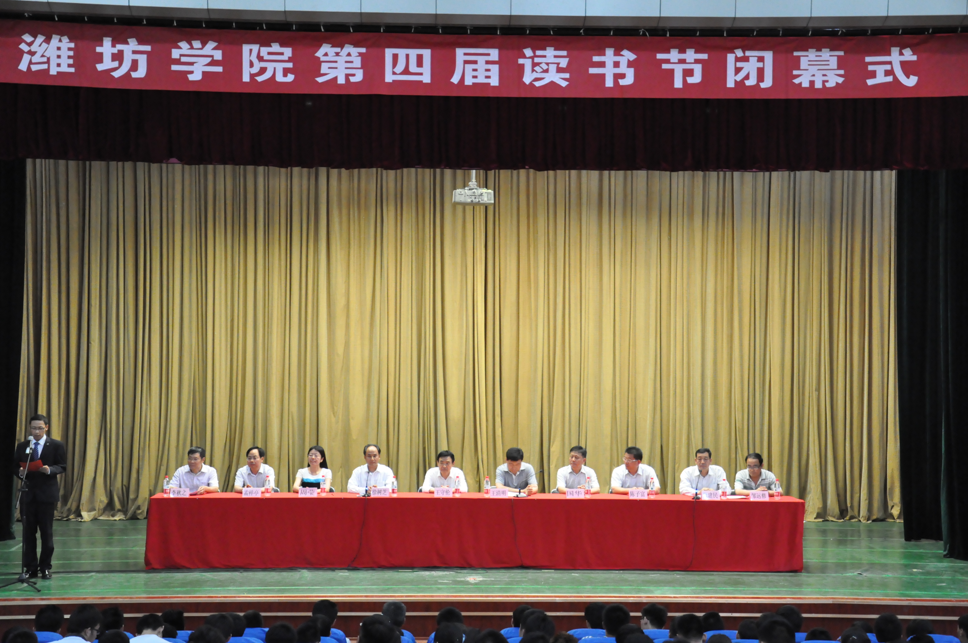 为了对整个读书节活动进行回顾与总结,展示同学们的风采及颁奖,2014年5月26日下午3点,潍坊学院第四届读书节闭幕式在图书馆报告厅举行。潍坊学院校长王守伦、副校长王清明、潍坊学院图书馆馆长耿建民、弘德书院院长陈子富等领导莅临本次闭幕式,弘德书院部分师生共同参与。闭幕式由潍坊学院宣传部部长徐树芝主持。