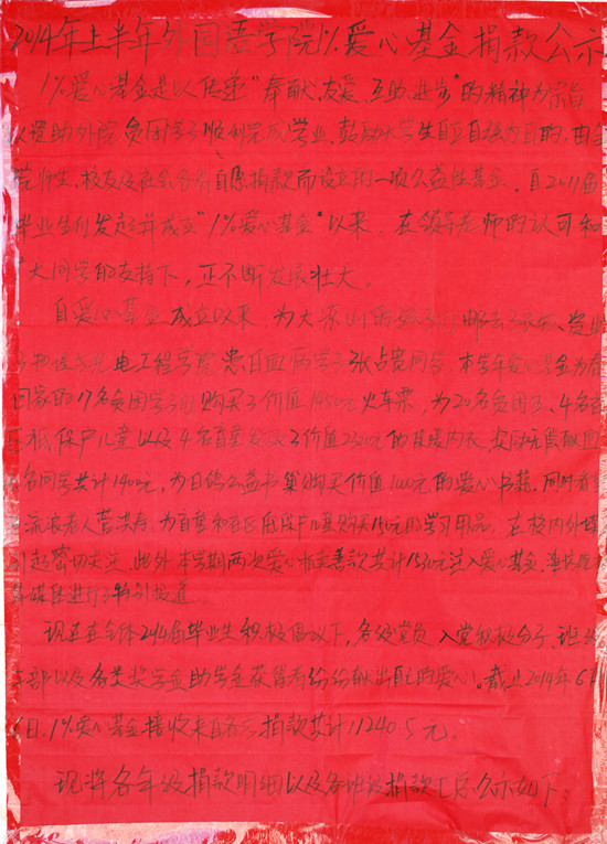 外国语学院第14届毕业生发起的“1%爱心基金”筹集活动,不仅发扬了传递爱心的精神,并且为毕业生们自身的大学生生活画上了极具意义的句点。